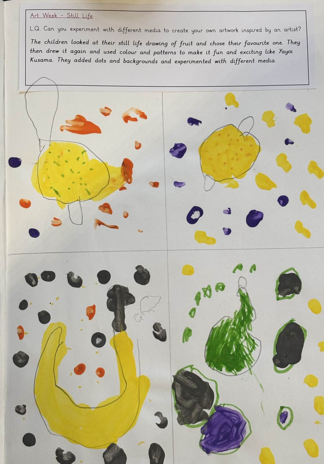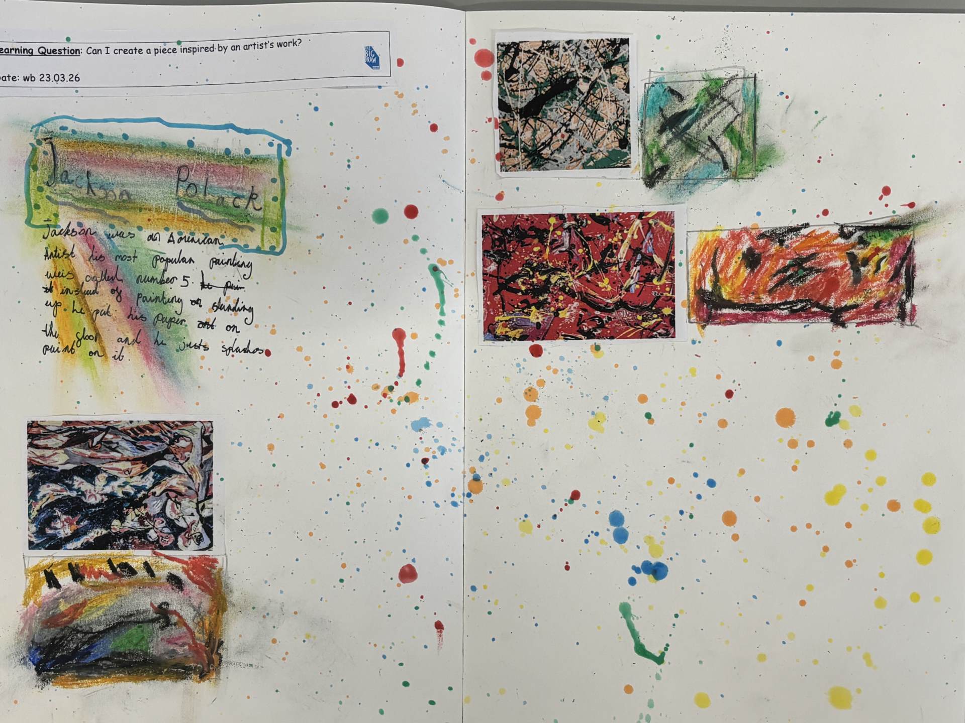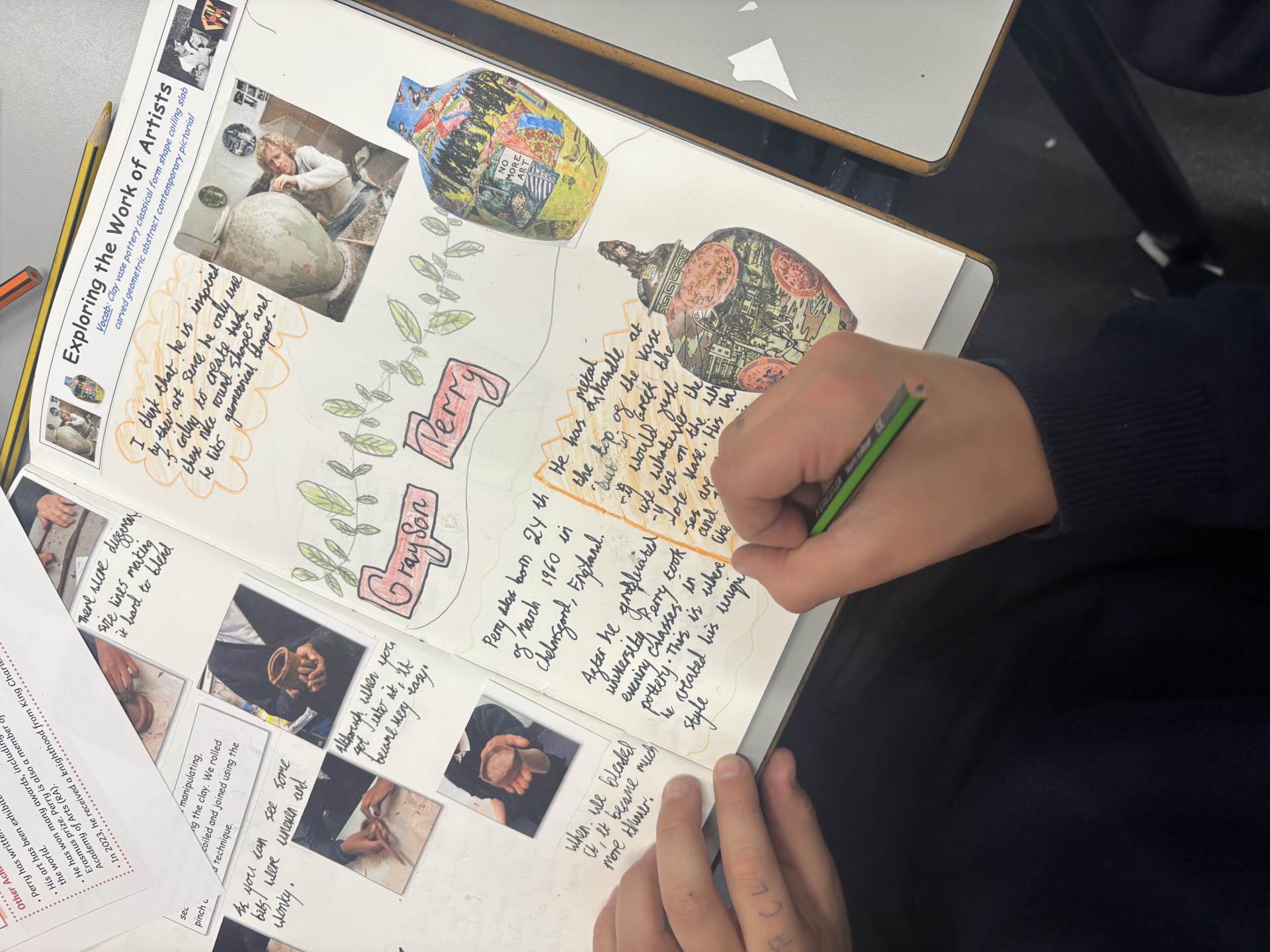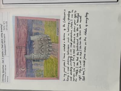 The children are introduced to a variety of contemporary and historical artists and craftspeople, using them as inspiration. They continue to document their artistic journey through written reflections and annotations in their sketchbooks, using more complex vocabulary to describe their processes and outcomes. As they experiment with tools and media, they become more confident in making informed artistic decisions and explaining their choices. They also learn to refine and improve their work, often working over longer periods to complete more detailed and thoughtful pieces.