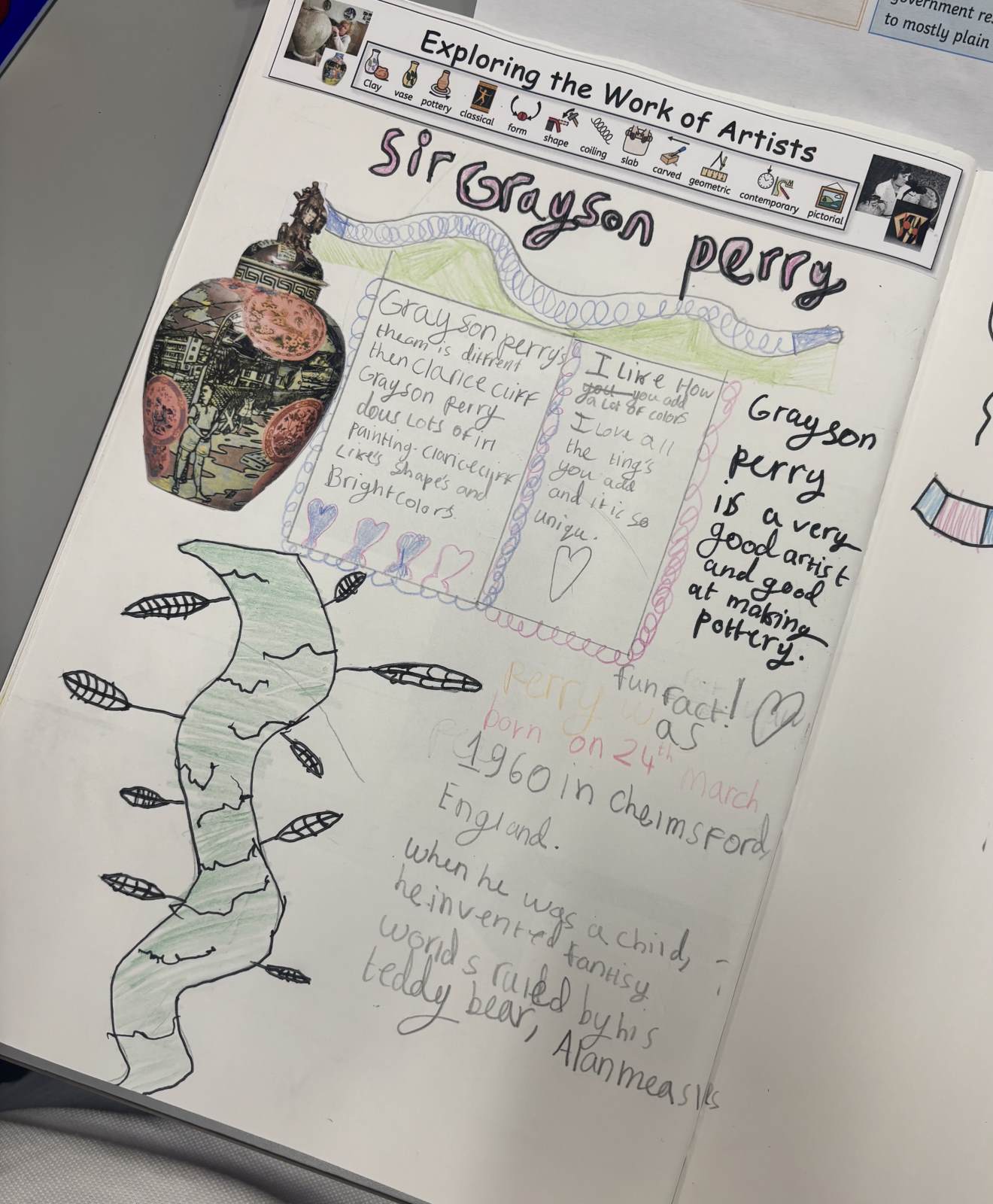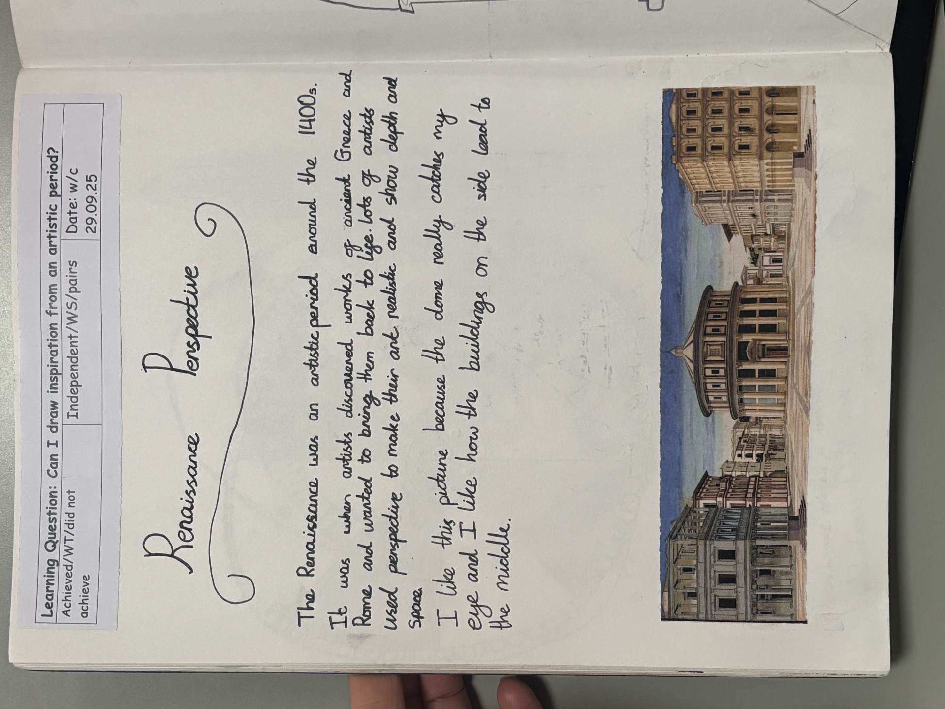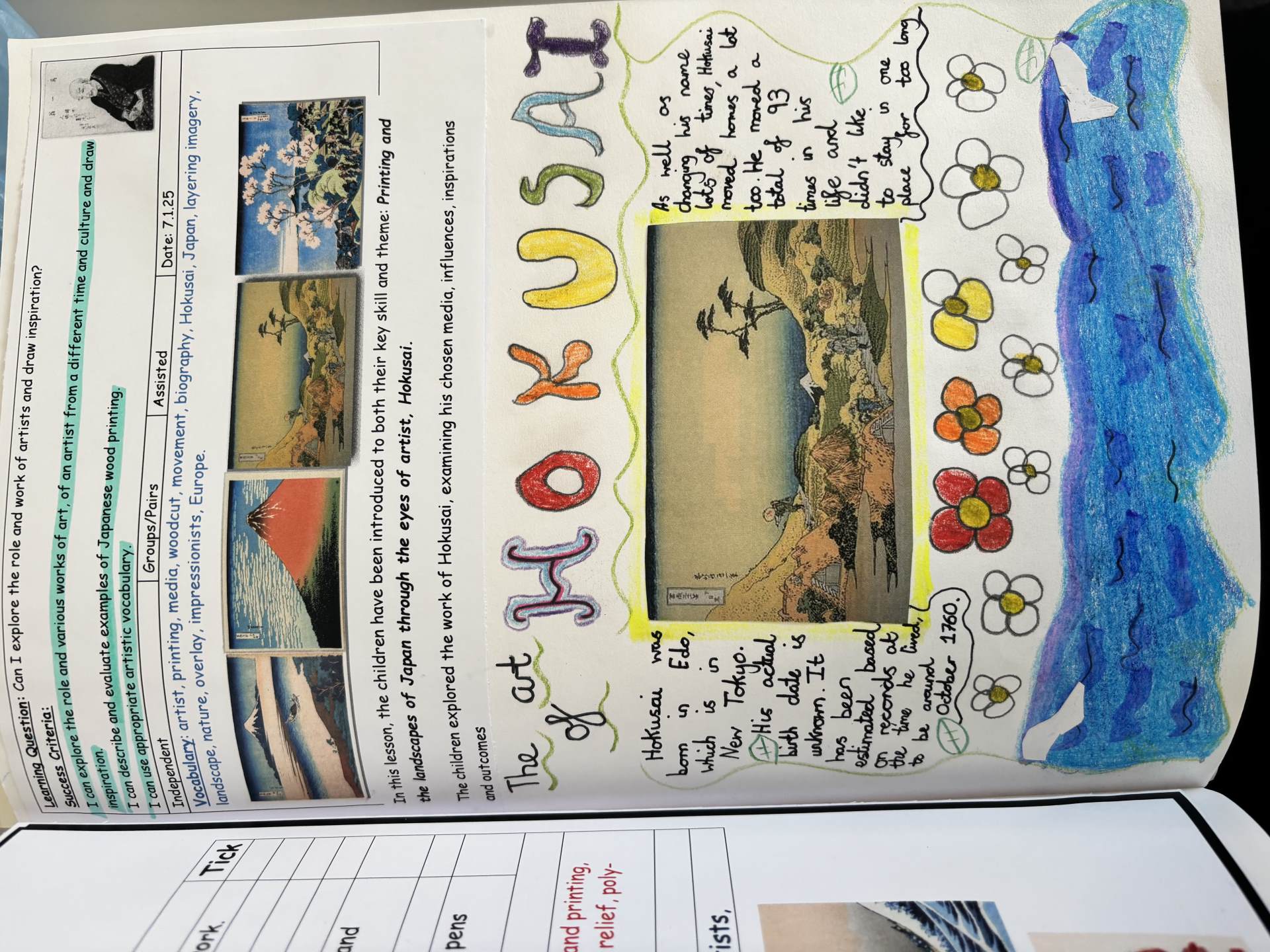 The children are introduced to a variety of contemporary and historical artists and craftspeople, using them as inspiration. They continue to document their artistic journey through written reflections and annotations in their sketchbooks, using more complex vocabulary to describe their processes and outcomes. As they experiment with tools and media, they become more confident in making informed artistic decisions and explaining their choices. They also learn to refine and improve their work, often working over longer periods to complete more detailed and thoughtful pieces.