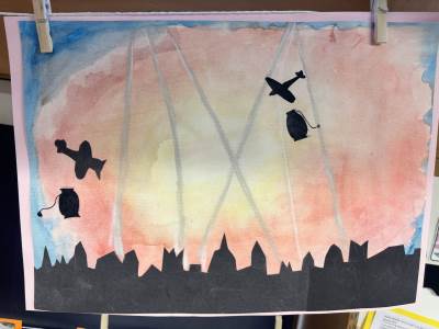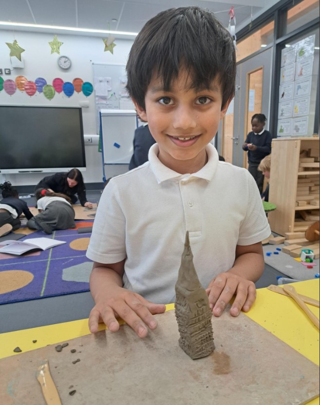 Year 4 provides opportunities to explore a broader range of media and techniques through topics such as London at War (painting), Rivers (collage, printing, and marbling), and The Romans (sculpture).
