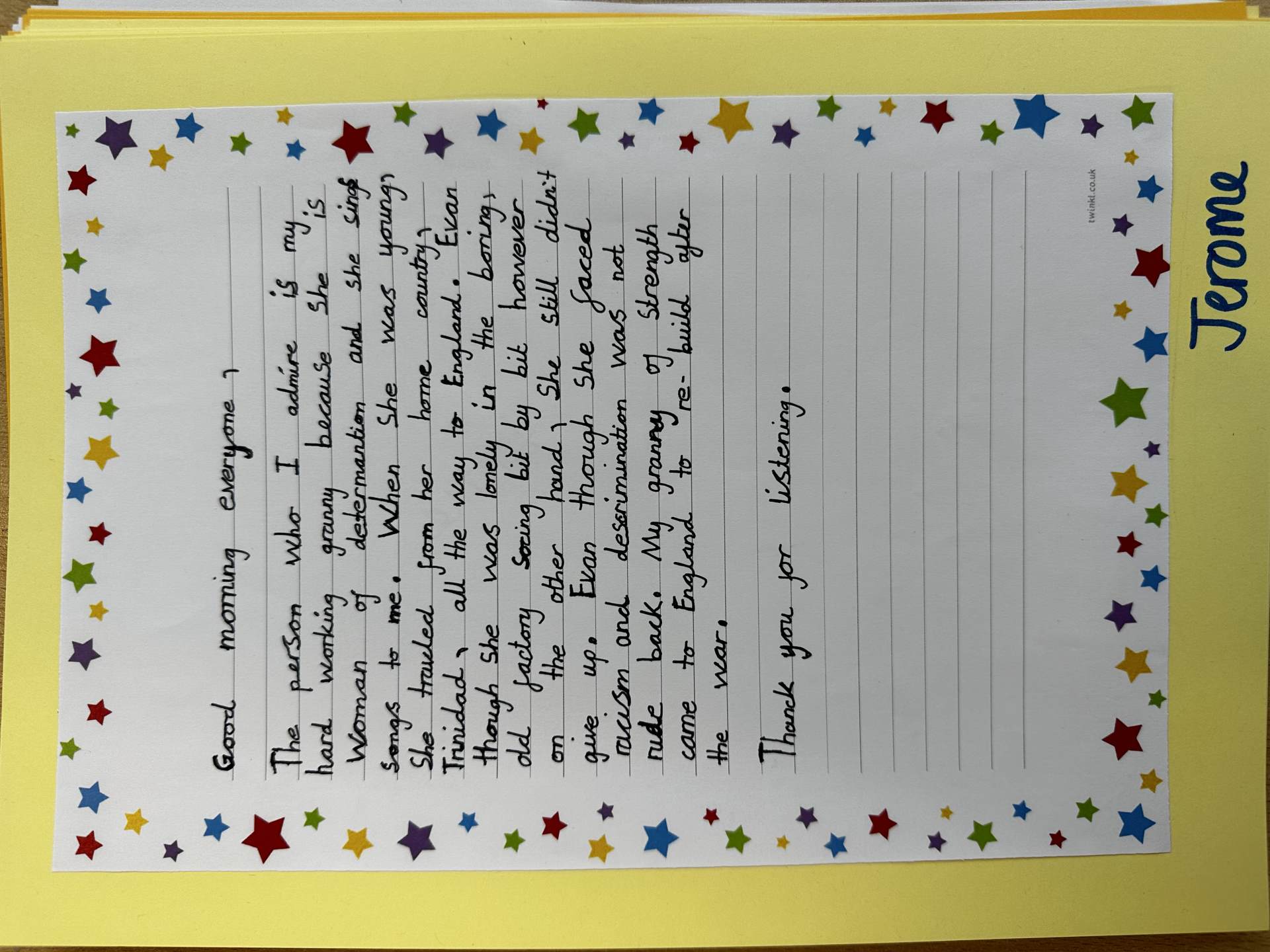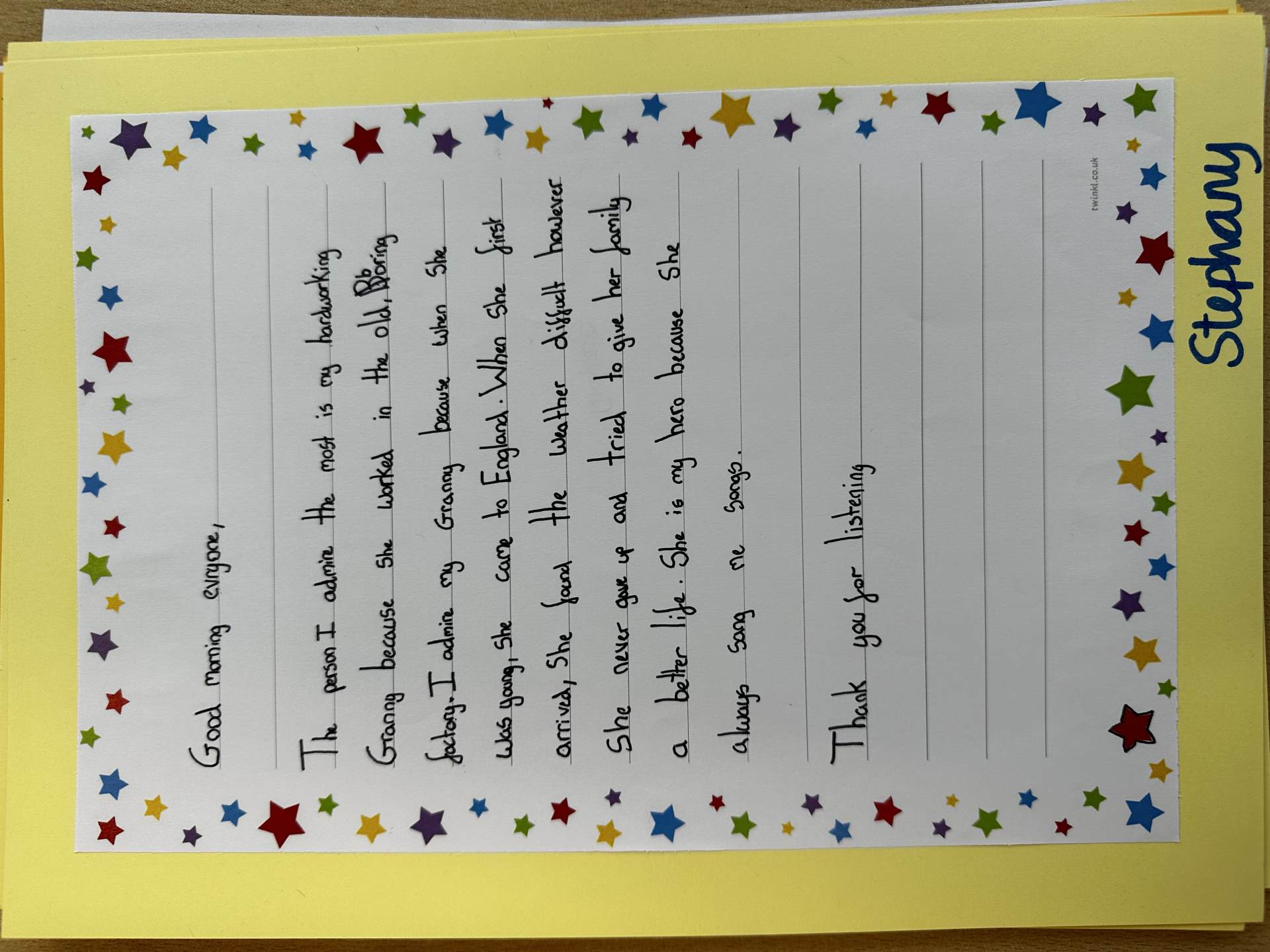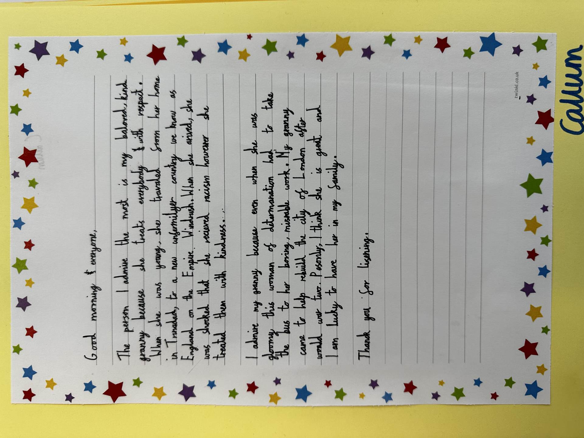 Handwriting is taught three times each week, alongside the weekly spellings, for a period of 10 to 15 minutes. In Early Years and KS1, handwriting is taught alongside phonics, while in KS2 handwriting is embedded alongside word level work and spellings. We also use the Letter-join Handwriting Scheme: https://www.letterjoin.co.uk/