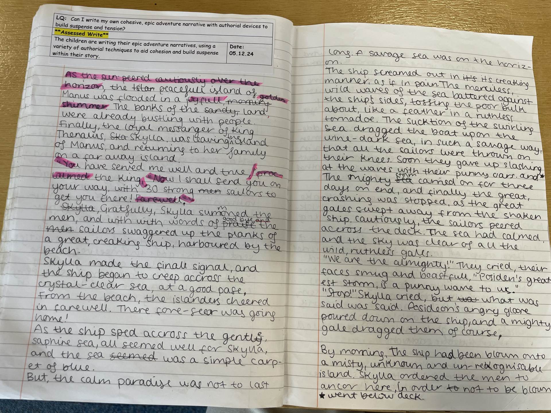 In year five, children continue to write for a range of purposes and audiences, showing a greater awareness of the reader. Children learn to make choices about grammar and vocabulary to use within their writing, and to select appropriate layout features for the text type. Children show greater confidence in selecting adverbials, prepositions and conjunctions to build cohesion within and between paragraphs. In narratives, children consider the balance between dialogue and action, and how dialogue can be used to move a story along.