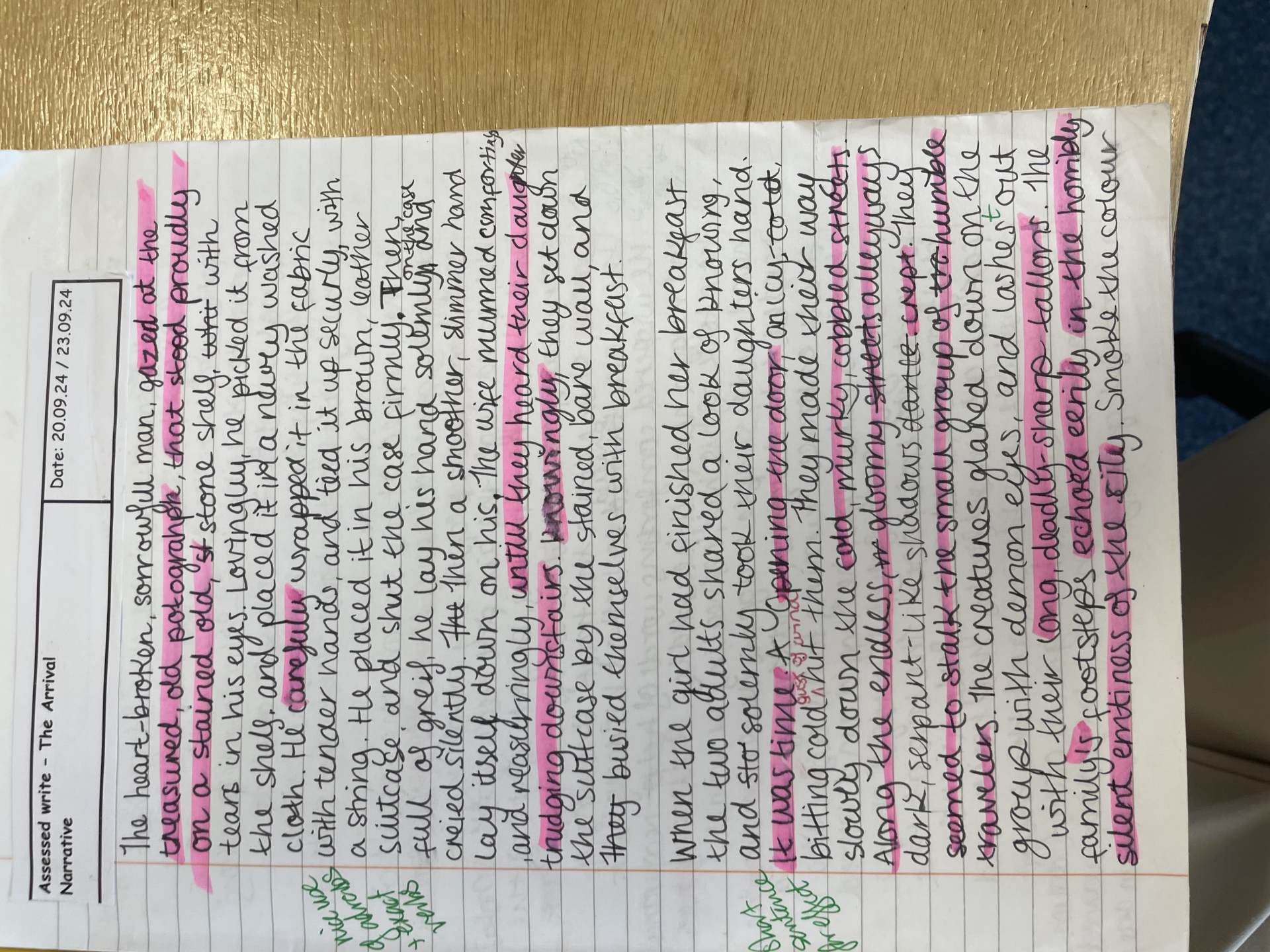 In year three, children begin to develop their writing across a wider range of text types, writing for real purposes and audiences. They write in more detail about settings and characters, and develop their plot in narratives. They begin to use speech within narrative, using inverted commas based on modelled writing. Children introduce adverbs to their writing and begin to use prepositions.