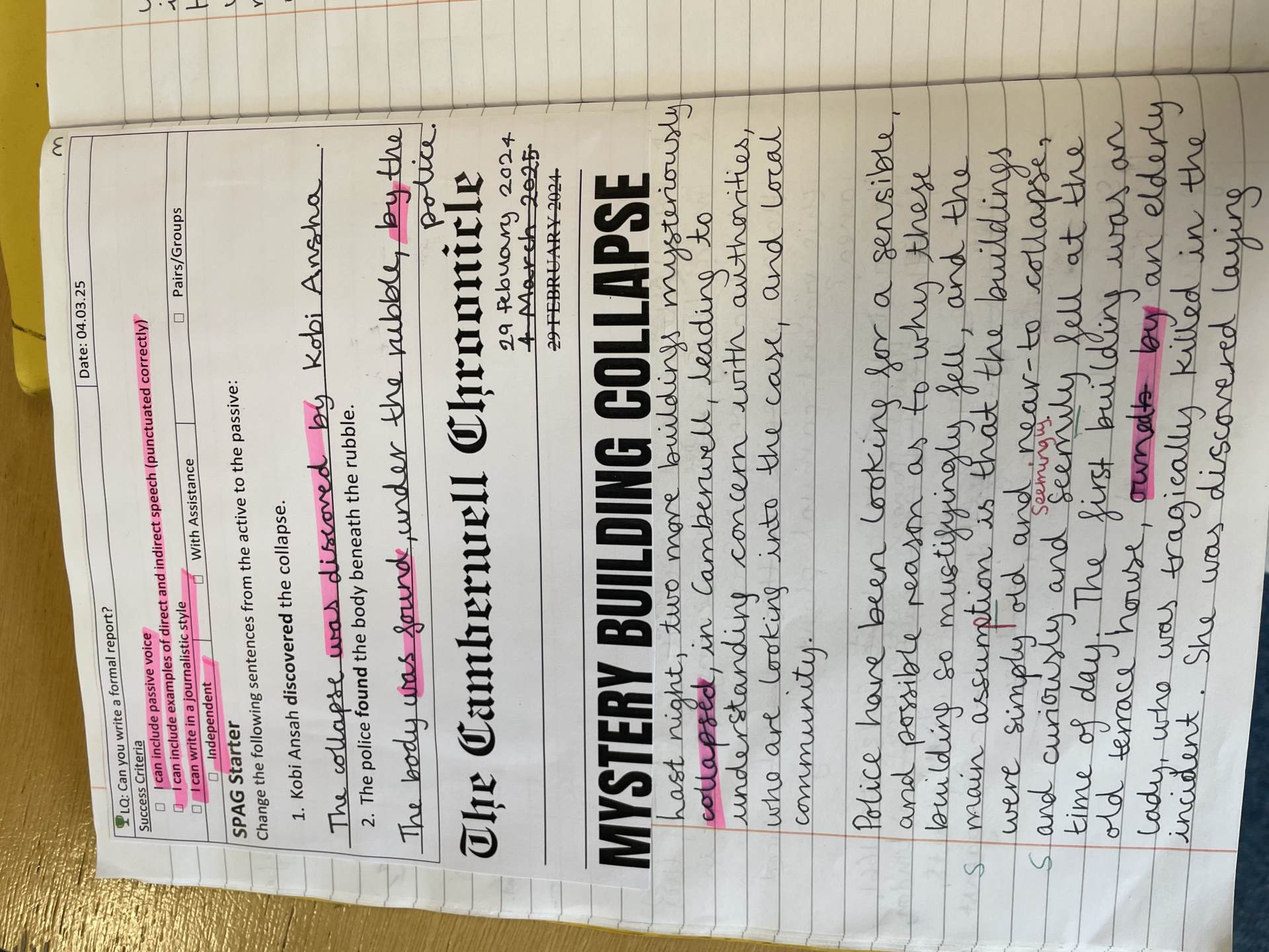 In year four, children have an increasing awareness of the correct language and form required for different fiction and non-fiction text types. They can create their own characters, setting and plot for narratives, and employ the conventions of speech with greater accuracy. Writing for a range of purposes, children demonstrate a greater awareness of grammar features, such as: prepositions, fronted adverbials and conjunctions. They maintain the use of joined handwriting throughout independent writing, and continue to learn rules for spelling words with a variety of prefixes and suffixes.
