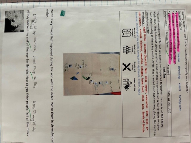 We support understanding of chronology through timelines which are displayed around the school. This supports children to make connections with previous history learning.