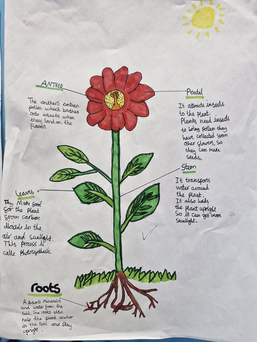 · Plants:Identify parts of a plant and their functions. Investigate what plants need to grow well and explore how water moves through plants and how seeds are formed and dispersed.