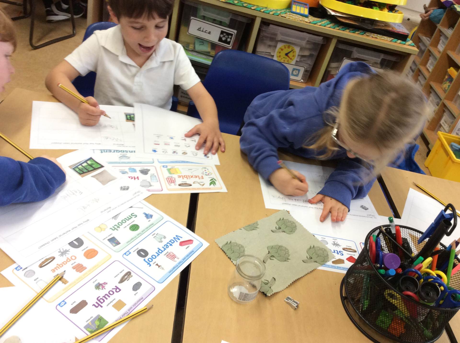 Pupils explore materials such as wood, metal, water, and plastic. They investigate how materials change, and what happens when they are heated, cooled, mixed, or dissolved.