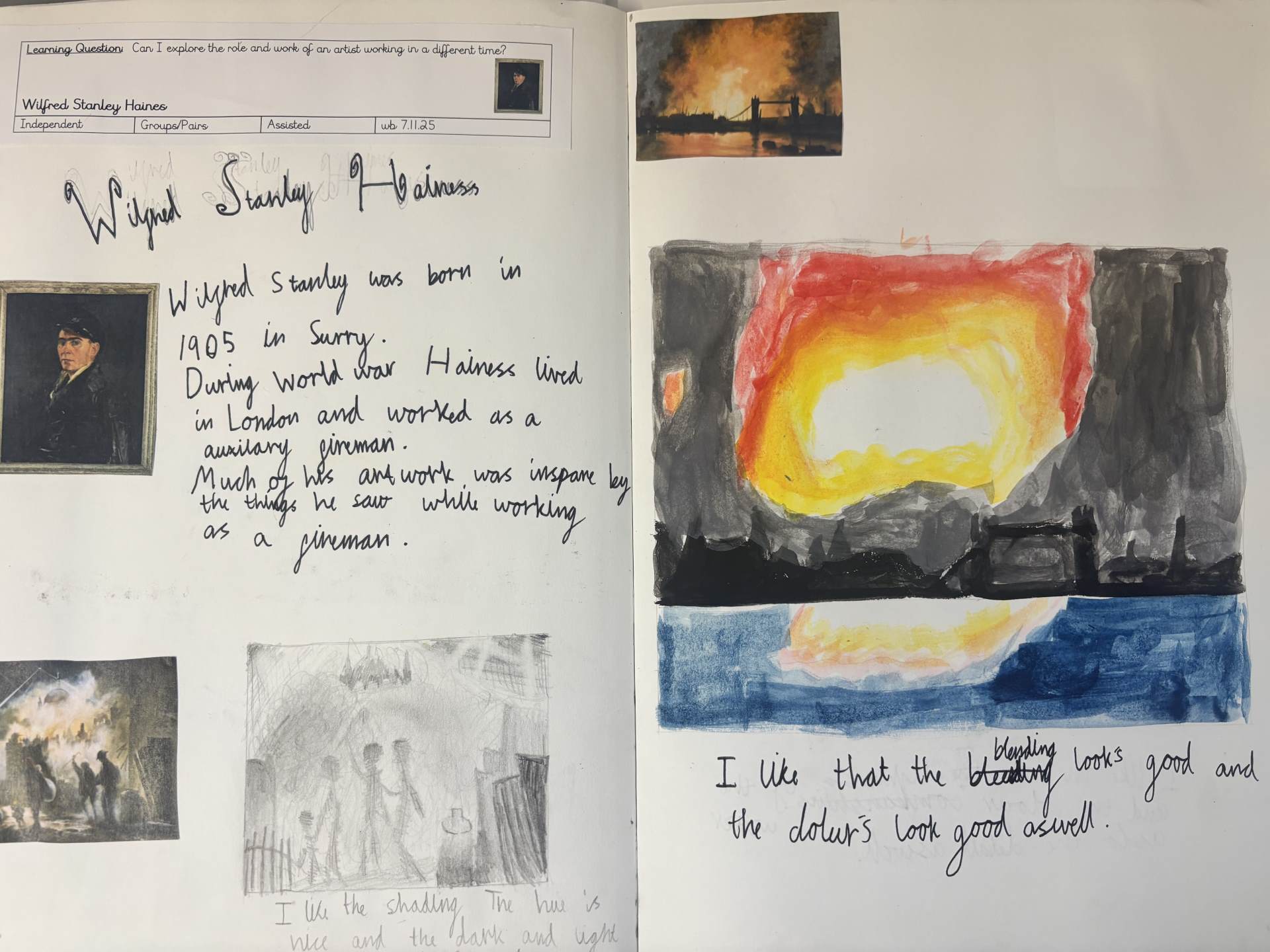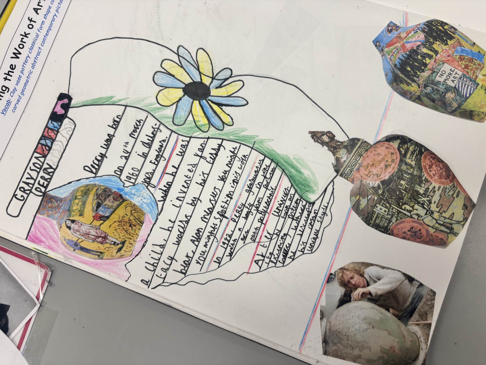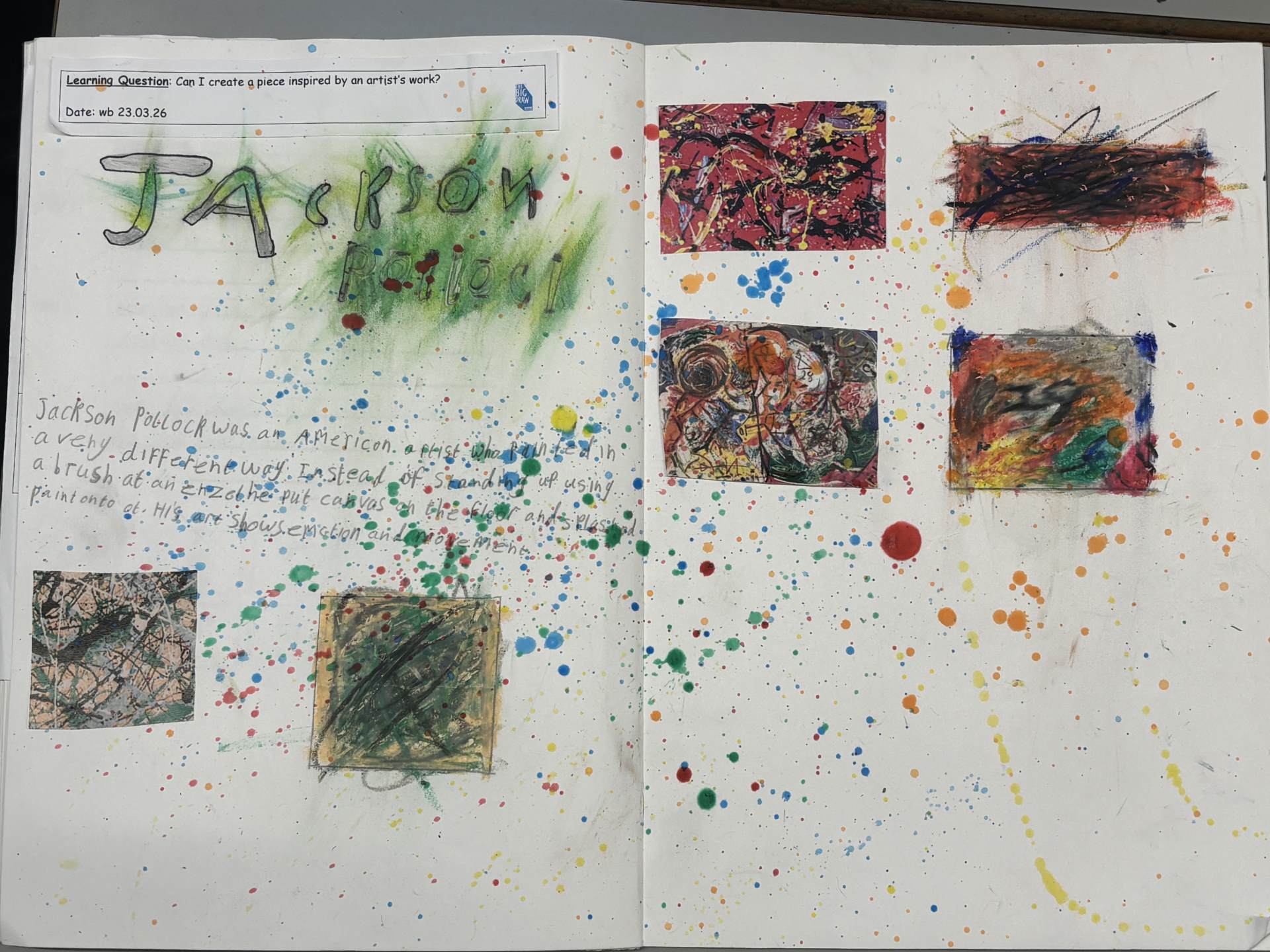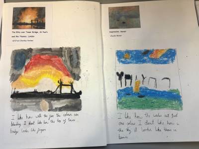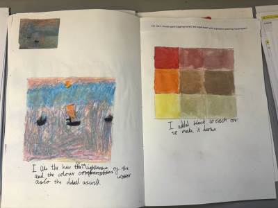 The children are introduced to a variety of contemporary and historical artists and craftspeople, using them as inspiration. They continue to document their artistic journey through written reflections and annotations in their sketchbooks, using more complex vocabulary to describe their processes and outcomes. As they experiment with tools and media, they become more confident in making informed artistic decisions and explaining their choices. They also learn to refine and improve their work, often working over longer periods to complete more detailed and thoughtful pieces.