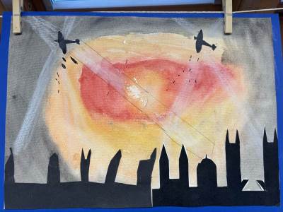 Year 4 provides opportunities to explore a broader range of media and techniques through topics such as London at War (painting), Rivers (collage, printing, and marbling), and The Romans (sculpture).
