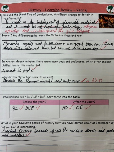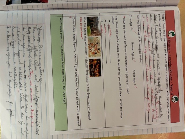 The history curriculum has historical skills and factual knowledge at its core. It reflects the aims and content of the National Curriculum, at each key stage. This begins in the Early Years with the ‘Understanding the World’ strand of the EYFS framework. We want them to be able to recall this knowledge in order to show understanding of key features of a particular period, while making connections and comparisons between periods of history. Regular opportunities are given to children to revisit previous learning through termly learning reviews and quizzes. Children should build on key skills throughout their time at school, such as asking questions, using evidence to answer questions, and draw conclusions from primary and secondary source material. Throughout the history topics, children should have an understanding of how historians know about and debate the past.