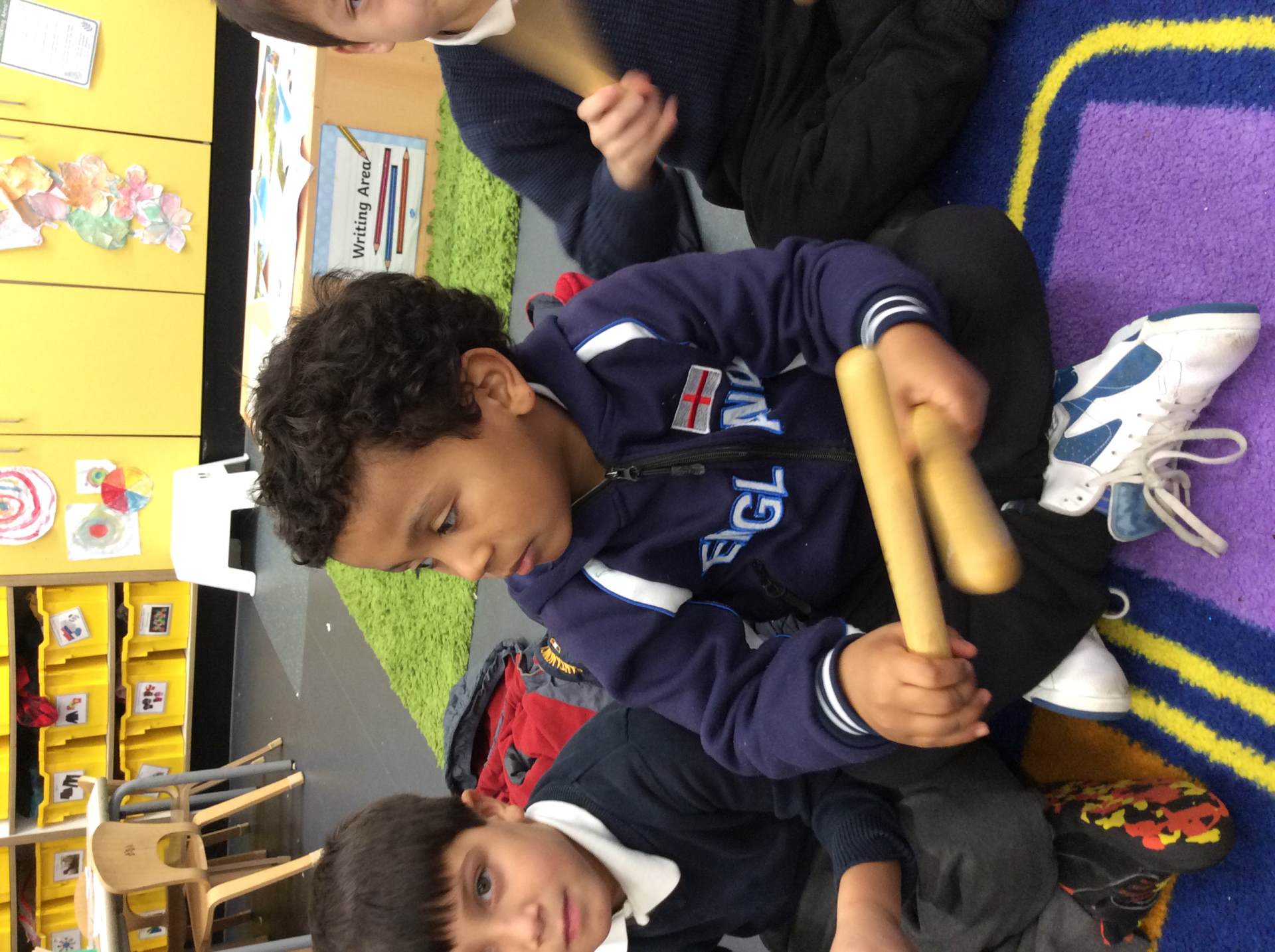 Throughout Year 1, the children build on what they learned in Reception and continue to develop their musical skills in line with the Primary National Curriculum. They learn to sing familiar songs, tap and clap the pulse and rhythm, and recognise different sounds made by voices and instruments. The children explore high and low sounds, long and short sounds, and changes in music such as loud and soft, and fast and slow, often using movement to support understanding.