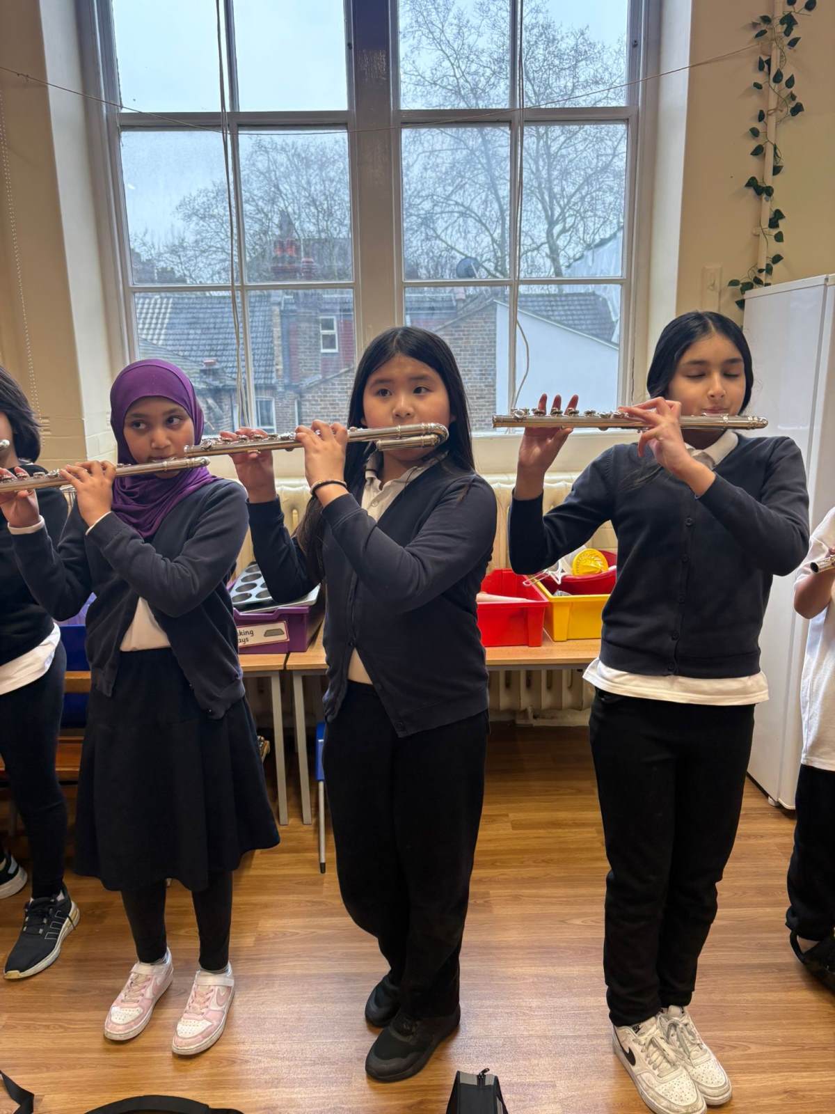 Throughout Year 5, the children build on the instrumental skills and musical understanding developed in the previous year, following the Primary National Curriculum, by learning to play woodwind instruments. Over the year, pupils are introduced to the clarinet and the flute, learning how each instrument is made, how sound is produced, and exploring their role in different musical traditions and cultures. The children begin by playing a small number of notes and gradually extend their range, developing good posture, breath control, embouchure and finger technique, supported by regular singing and rhythm warm-ups.